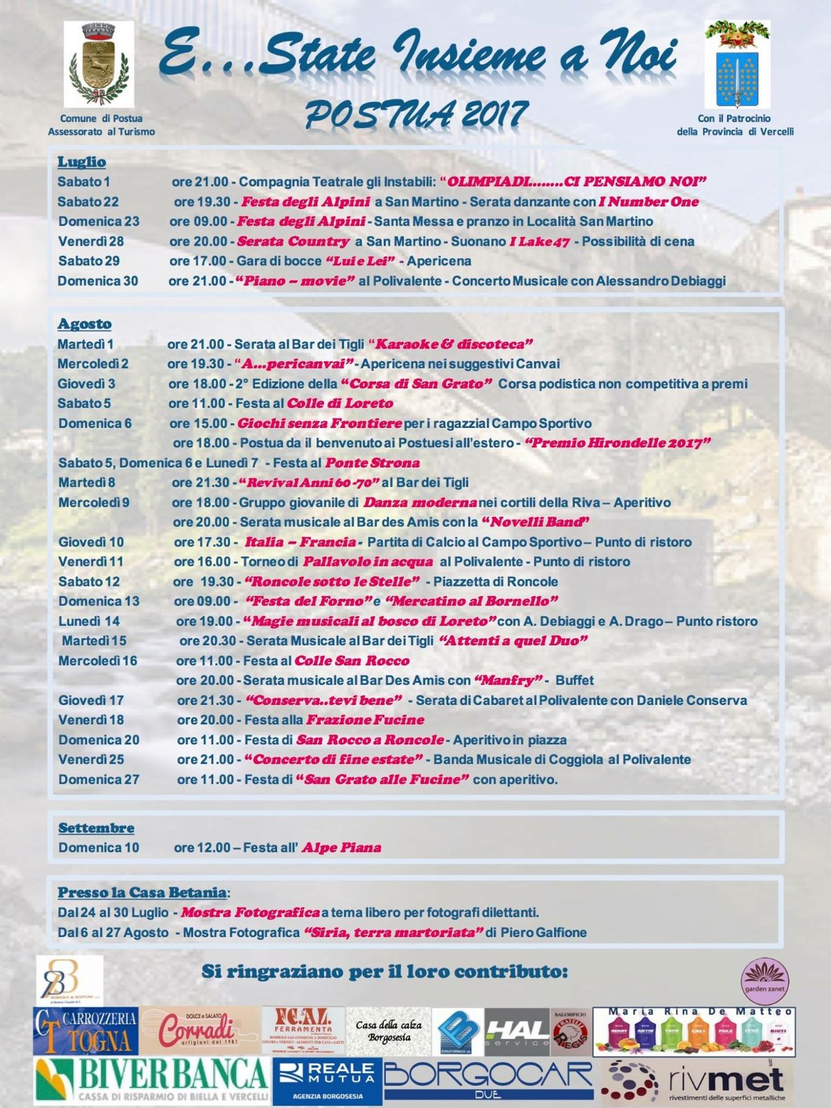 PROGRAMMA MANIFESTAZIONI ESTIVE