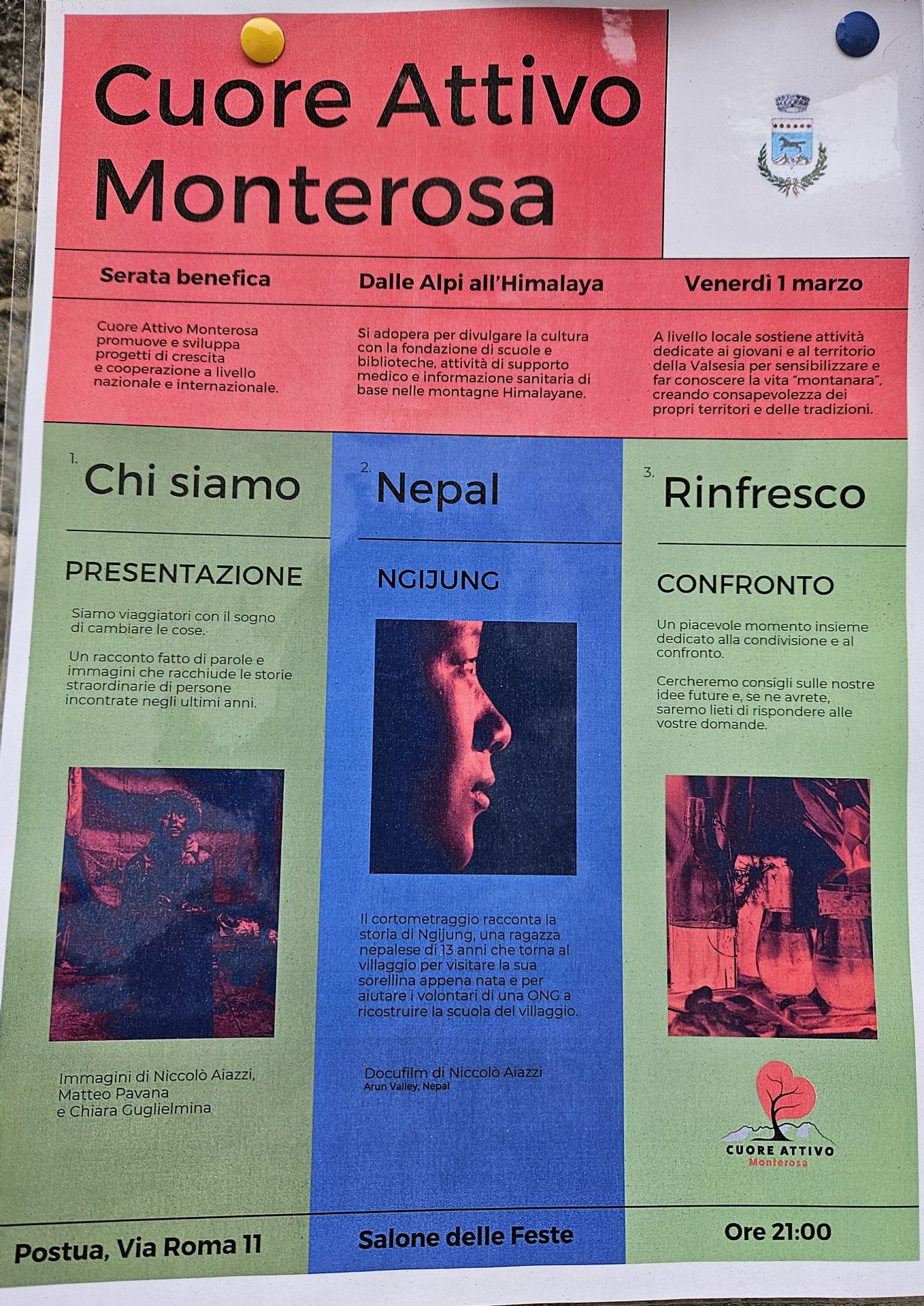 Serata Benefica Venerdi' 1 Marzo ore 21.00 con l'associazione cuore attivo Monterosa che promuove e sviluppa progetti di crescita e cooperazione a livello nazionale ed internazionale