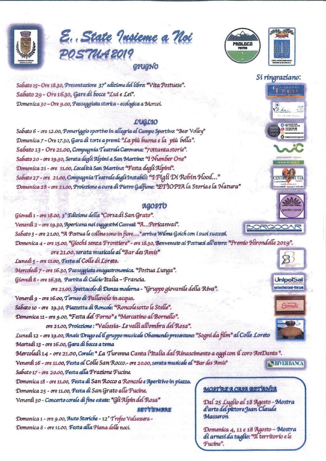 IN ALLEGATO LOCANDINA MANIFESTAZIONI 2019